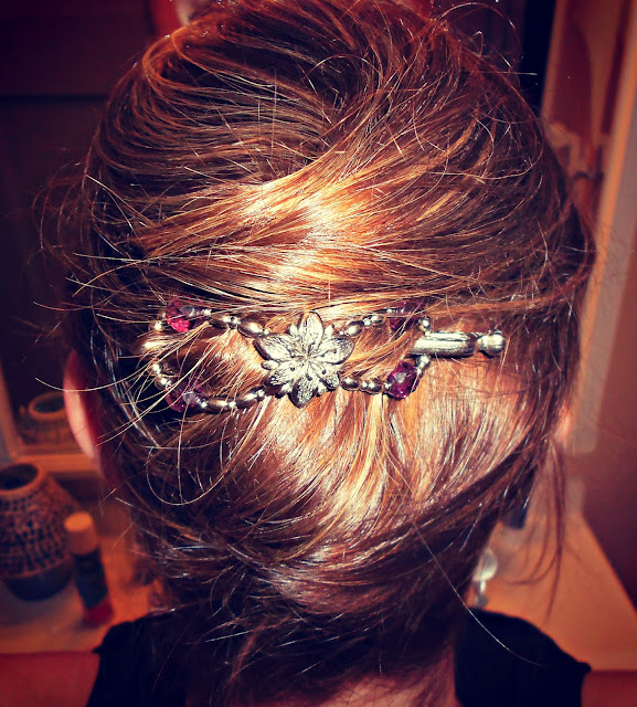 Here I did a french twist- I felt all fancy wearing this instead of a claw clip...but LOVED it!