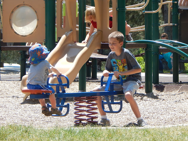 None of the boys from Big brother's class were at the park day we went to, so he watched little brother for me. |